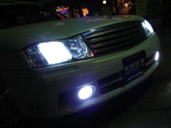 足回りにはセダンオーナー御用達のJICの車高調を入れて、ホイールは超ラッキーなタイミングで中古として出ていたトラフィックスターのDTX ポリッシュ 20インチ!タイヤには低車高の車にもバッチリ使えるTOYOのMP SPORTS 2を履かせて・・・どぉです?この低車高!!今後はエアロも検討したいな〜とN君も( ̄ー ̄)ニヤリ ヘッドライト&フォグランプにもHIDを装着して暗い夜道もスッキリ見えます!