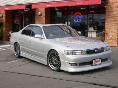 “ラグジュアリーチェイサー”をテーマに張り出し感の少ないエアロを選んでクレスタ用をワンオフで加工取り付け!!BL−20FX NEW’Sバージョンもいち早く飛びついてご購入いただきました☆今後は・・・ミラーウインカーをご検討中・・・。