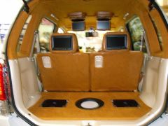 内装は明るいベ−ジュカラーと、茶色の組み合わせをベースに高級素材アルカンターラとビンテージレザーで高級感だしながら、しっかりモニターメイクも抑えた仕上がりです!シートベルト、フロアマット下まで徹底的に純正色は払拭されたこだわりようです!!