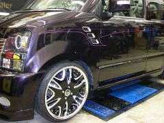 今回ホイールをクラブリネア L566へ変更、しかもこだわりの7J!フェンダー部へマセラティダクトとピンストでサイドラインを追加し ボディカラーのパープルをうまくアピールした仕上がりで、ワンオフ加工も随所に施しました!