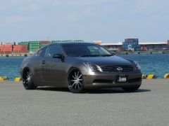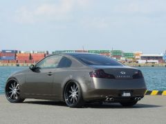 出来ました!バリシブ 35クーペ!! 外装はM5の限定カラー セパンブロンズでオールペイントし、ブラックルーフとテール、ヘッドライトなどをスモーク加工しイカリングもバッチリ。足元は車高調でシュバートSC1 21インチ!渋くアルマイトの深リム仕様もステキ♪ マフラーは藤壺をテール加工して 4本出に変更。カッコよすぎ!