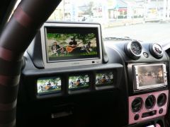 ロールバーを組んでいて走り仕様になっていますが、実は・・・この省スペースにモニターが8枚も入ってますっっ!!
