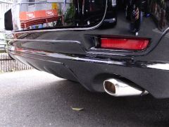 まだまだカスタムベースとしては珍しいヴァンガードの登場です! 足元にはしっかりと22インチのタイヤホイールにキャリパーも赤でペイント! ポイントをしっかりとおさえてます!! そして後ろから見たときのワンポイントとしてデュアルタイプのマフラーカッターを溶接で取り付けて全体的にバランスよく整えてます。今後はライトなどの光物でさらなるポイントとインパクトを出したいですねぇd(*^-゜)