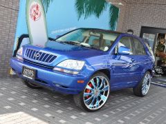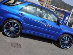 いやー遂に完成しました(^-^)究極系の10ハリアーです!24インチ、内装ALL張替え、内装全塗装、外装全塗装、ガラス交換までしちゃいました!なのでもうピカピカ!!それからシルバーリーフの入ったサイドのピンストライプ&24インチのホイルのスポーク部にブルーメッキ処理!トドメにBIGブレーキキットを入れてビシッと止まるようにしていますよ(^-^)