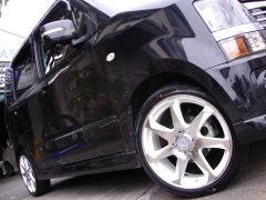 こちらのオーナーさんJちゃんは彼氏のハリアーに22インチのメッキホイールが装着されたのを見てテンションあがって! マイカーのワゴンRにもお気に入りの632のパメラ 16インチでブラックボディとは対照的なホワイトカラーをチョイス☆ ブリンカーでミラーウインカーも光らせちゃってます♪