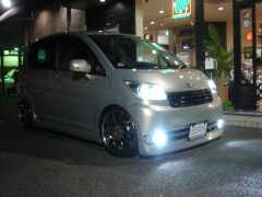 プレジアティシモのフルキットにWORKヴァリアンツァシュヴァートSC2の特注カラー17インチでインパクトある概観です。ボディーカラーも珍しいシャンパンゴールドでけっこう目立っちゃいますね(^^)足廻りはAIMGAIN車高調とJ−LINEのアクスルキットで快適な乗り心地です♪今回一番の注目はやっぱヘッドライトかこうですかね〜☆