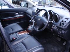純正のレザーシートに木目パネルで高級感バッチリ! さすがハリアーです!! オーディオヘッドユニットにアルパインを取り付けてルームランプなどはLEDで白く明るく使い勝手バッチリです!