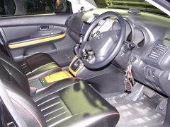 純正でも木目パネルがあり高級感バッチリなのですが…オーナーTさんの好みではなかったので今回イージーグラフィックにてブラウンウッドから設定の少ないリトルバーズアイへとchange! シートカバーはナント! 8505パターンから好きなデザインから選ぶことができるディオームでお気に入りカラーの黒・赤をチョイス! 次回はこれに合わせてドアの張替えを検討中…かなりナイスなデザインも考案済みなのでGOサインを楽しみにお待ちしてます♪〜(^ε ^)