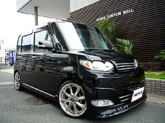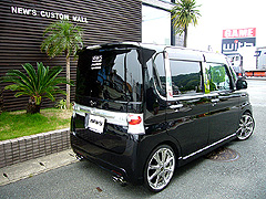 さらに進化しました!! リミックスリネア 17インチ! そして…今回翔プロデュースのバンパーはフォグランプを加工して装着!! &アイラインをつけました!!! 今大人気のイカリングもバッチリ! お顔のインパクト激UPです☆ でもお顔だけじゃなくお尻になるリアはバンパーとマフラーをプレジアティシモに変更! これで全体的にシンプルにバランスよくまとまってます☆