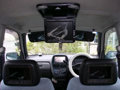 カロッツェリアのオーディオに中も7インチのバイザーモニターに3連ミラーモニター(写ってない…;)に10.2インチフリップダウンモニターと後ろへのアピールはバッチリ見せたい放題!! 今後が気になる1台ですね(^-^)