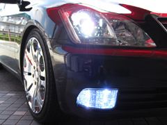 足元で一段と輝いているのは、レーベンハートLC1LXの19インチです!今では手に入らないホイールをチョイスしダウンサスで程よく車高をダウンしています。ヘッドライトには、6000KのHIDをフォグにはインパクト絶大な10000Kを入れて青白さ抜群です(*^^)v