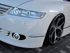 エクステリア:ブリックV−VISONverのフルキットを装着し、リヤバンパーにはLEDリフレクターをワンオフで埋め込みました!フェンダーはアデージョに変更しダクトの中にLEDを仕込みばっちりです!ヘッドライトはインナーをメッキ加工し、CCFLイカリングを装着!目を惹く足もとには、BOLDWORLDのエアサスを装備し低車高を、ホイールはヴェネルディーデラロッサの20インチを投入しています!