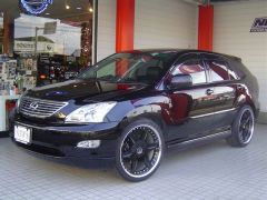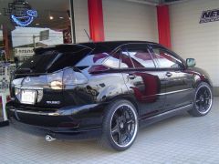 ブラックで統一されたシンプルラグジュアリーなハリアーです☆特注のLS406 ブラック仕様に合わせてレクサスキャリパー、テール、リアフォグまで徹底的にこだわってますね(^^)
