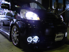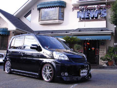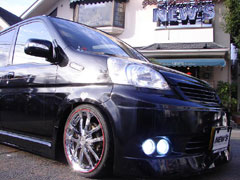 クイーンズフルキットを装着し、フロント、リヤは加工をしています!!!!!フロントはダブルFOG+CCFLイカリング、リヤは、マフラーレスにアルファード用LEDリフレクターをワンオフにて埋め込みオリジナリティを取り入れています(^−^)ホイールはクレンツェ16インチに赤のリムテープをワンポイントで取り入れています!!!!!全体のバランスを整えるこの低車高☆GOOですね(*^^)vしかも聞いてびっくり女性オーナーです!!!!!