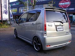 男前な一台が出来上がりました☆17インチのクラブリネアL612にBOLDのアブソリュートDSで超低空仕様!!乗り心地も兼ね備えたセッティング。v(^^)vエアロもモードパルファム ファントム雅夢を巻いてお洒落な男前号が完成しました!!そこにオーナー様こだわりのヘッドライト加工でレンズインナーブラスト加工とプロジェクター&LEDリングで他のMOVEを圧倒する目力をGETしました☆