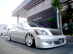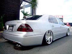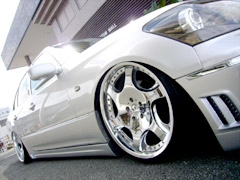 イイッ!! なんといってもエイムゲインのフルエアロを加工してベンツフォグ(フォグも加工してLED入っちゃってます☆)やリフレクター・ダクトなどオリジナリティ要素満載です!! 足元にはクレンツェの20インチにBOLDのエアサスで下げた時のイカツさもキテます!!!