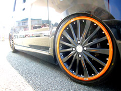 足元にクリムソン最新作のバーゼル 17インチのマットブラック! にさりげなくピンストでオンリーワン仕様に! 車高はBOLDのエアサスでDOWN!! エアロはパルファムでライトには大人気のイカリング! テールはブレーキ&ウインカーがLEDのものをチョイス! 落ち着いていながらアピールポイントはバッチリです!!!