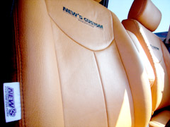 オーディオ・モニターはアルパインでまとめ☆ 外装とのバランスをうまくとってシートはオレンジのレザーで張替えNEW'Sロゴの刺繍に! タグまでつけてNEW'Sブランド、アピリまくりです!! 足元のマットもプレシャスさんのオレンジマットで揃えてイイ感じ♪イイ感じ〜♪(^∀^)