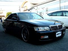 珍しいC35ローレルのVIP仕様です!Y33シーマ純正のフロントグリルやフォグランプを加工装着して普通とは違った印象ですね(^^)ホイールもいまだ大人気のWORK LS207の特注BKを装着&レンズ類ブラックアウトで統一感を出してます♪