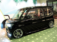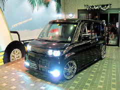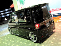 このお車・・・キュートな女性オーナー様です!!びっくりするのはまずこの低さ。。。17インチ最新作のヴィエナ メリージア☆第一号装着車!!足回りはBOLD DS車高調+L-LINEアクスルキット。。。オーナー様のこだわりにて装着。レンズ類は薄くスモーク加工を施して、黒ボディーにいっそうまとまり感のでる仕上がりにっ!ヘッドライトはCCFLリングをWで装着してフルHID化。テーマは『男っぽく☆』って・・・かわいく言われてもぉ〜。。。この車高にスタッフ全員ためらいました。(汗)