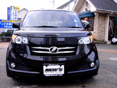 クレンツェヴィシュヌの17インチにタナベの車高調で程よくローダウンしています☆ダブルプロジェクター&ダブルイカリングでフロントフェイスをさらに引き締めバッドフェイスに仕上げました!!!!!このヘッドライトはインパクト絶大ですね(*^^)v