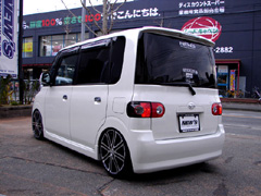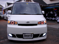一番に目に飛び込んでくるフロントフェイス!モードパルファムのエアロをフルキットで装着しヘッドライト加工でプロジェクターにREDのイカリングで引き締めています!!!!!塗り分けもあえて半ツヤブラックをチョイスしこだわりを出しています!BKホイールとの相性が抜群の1台です(*^^)v