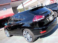 ブラックのボディーにLEXANIダガーの22インチ&タナベのダウンサスをチョイス!!シンプル仕様でキマッテますね☆今回はHIDバルブを装着させていただきました!今後はライト辺りもカスタムしていきたいですね(^^)