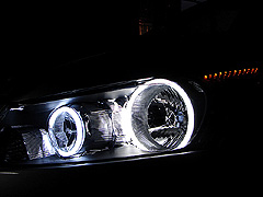 カスタムベースとしては、希少なインスパイアです。まずは手始めにヘッドライト加工を施工しダブルイカリング仕様にワンポイントでLEDを埋め込んでいます(^−^)オーナー様も大満足でした(^^♪マフラーも無限へ変更し、今後はタイヤホイールの装着ですね(*^^)v