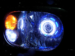 こちらも今大人気のヘッドライト加工を施工しています!龍鬼眼プロジェクターを入れ手前に白、奥に青のCCFLイカリングを装着しお好みで切り替え可能な使用になっております(^−^)今後は、タイヤホイールの装着ですね☆
