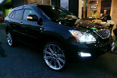 マーテルレオン22インチにデビアス用のセンターキャップを装着しているT様のハリアー!今回はヘッドライト・テールランプ・ミラーウインカー(ウェルカムランプつき)・フロントグリル・etc・・・。今回エクステリアパーツ盛り沢山でした!前からも後ろからも一気に表情が変わって、オーナー様も大満足☆LEXUS仕様ステッカーなどの細かいポイントもしっかり抑えて雰囲気出てます。(^^)v