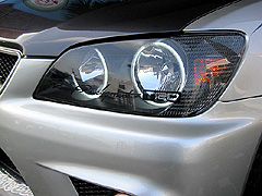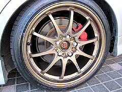 今回スポコン使用へのお手伝いをさせていただきました!ホイールはRAYSの鍛造18インチへ変更、メッチャ軽いです♪それからセッションのピンストライプを貼り付け☆極めつけはナイトシーンでも目立ちまくりのイカリング装着です♪更なるパワーアップ期待してます(^^)