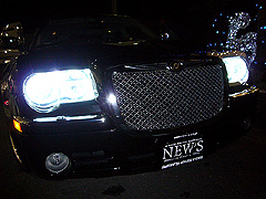 出ました! 300C!! デカイです!! そんな300Cの足元に今回巷では大人気のヒプノティック ディーウ゛ァ 22インチを入れちゃいました☆ タイヤ・ホイールの盗難防止に役立つマックガードもバッチリです!! そしてヘッドライトにCCFLのイカリング!! 眩しいです☆ テールもLED&スモークでまとめてます!!!!