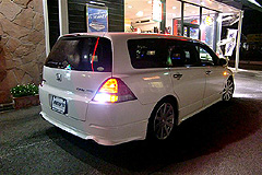 タイヤホイール・足回りをまず装着して、今回はライト類のバージョンアップ!!ありとあらゆる球をLED化!!ポジション・ウインカー・バック・ブレーキ・ナンバー。。。一気に明るさも上がり、LED特有のキレのある発光で周りのオデッセイに差をつけられますね!