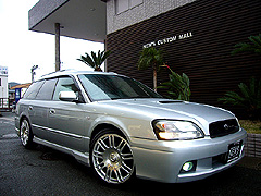 今回はレガシィへお乗換えでした。足元にはスパルコの18インチとビルシュタインの足回り! フォグもHID入れてます。