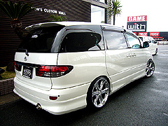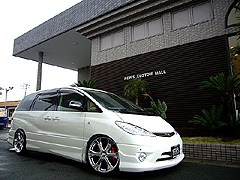 足元にレーベンハート LD-6LX 20インチ! にタナベのエアコブラ! さらにbremboキャリパー!! 前後にはDADのハーフエアロで全体的にまとまってキレイなエスティマです!! 味付けにマフラーエンドはニューズロゴ入りのマフラーカッターをつけてます☆