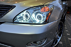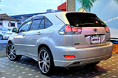 フロントのバンパーはNew'sエアロをチョイスし、モール部をスムージングし、サイドは、純正をボディ同色、リヤバンパーは、エルフォードにてMIXスタイルの完成です!ヘッドライトは、ダブルプロジェクター&イカリング、ハイビームはLoビームとしての機能を兼ね備えています(*^^)vエンブレム類もスモーク加工しています! 足元には、レーベンハートLT8、22インチで完璧です!