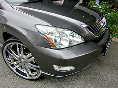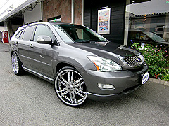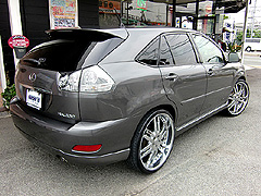 とても有名なK様のハリアー。NEW’Sの広告等にも出てます☆ボディーキットははNEW’SハーフKIT、タイヤホイールはジオバンナカラカス 24インチ!!ボディーのカラーも変更してポルシェカイエンのガンメタ+オリジナル配合です!!ジェントルメ〜ンな一台ですね☆