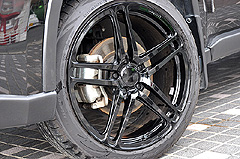 今回ヘッドライト加工を施工しました!CCFLイカリング、プロジェクターを加工装着し目立ち度抜群ですが、さらにヘッドライトインナーをマットBKペイントにてインパクト絶大なフェイスに仕上がりました!足元には、19インチの鍛造ホイールを装着しています。今後は、22インチです(^−^)