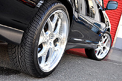 足元には今大注目のBalkenDTM22インチを装着!しかもオンリーワンを求め Balkenブラッシュドをチョイスしております(*^^)vタナベのダウンサスで程よく低車高にし、スポークの隙間から見えるブレーキをペイントで仕上げています!