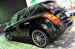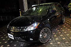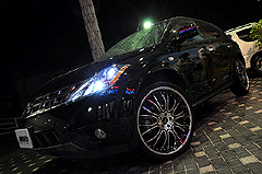 ブラックボディにG'zoxコーティングを施工して新車同等の輝き&水弾き! 足元にはVERTINIの22インチ! 車高はダウンサスでちょい落とし♪HIDは白い光の6000Kとシンプルにまとめたムラーノです。