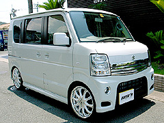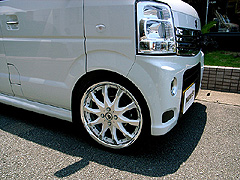 足元にボディ同色のシュバートSC4でさわやかなホワイトコーディネート☆ 足回りはRS-Rの車高調です! 仕事でも使うので魅せながら動きやすいベストな車高にセッティング!!