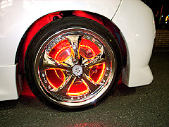 外装はホワイトボディにワークのVSKF、16インチに赤のホイールLEDで色使いのキレイな1台です! トランクゲートにはMr.Gによるピンストも入ってキマッてますね!!!