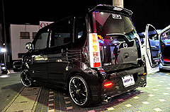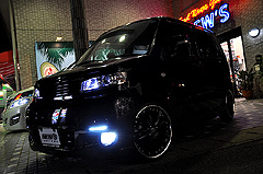 今回はカスタムの基本の「き」フルエアロ、タイヤホイル、ダウンサスを装着されたM様。エイムゲインのフルキット、ヴィエナ・メリージアがビシッとキマッテますねぇ!