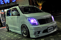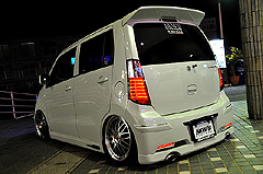 K-BREAKのデモカー仕様のMさんワゴンR!K-BREAKコンプリートフルキットにリリスの17インチを!足廻りは、BOLD製エアサス&J-LINE プレミアエイト リヤアクスルを装着しております!激アツなワゴンRですが、オーナーさんは女性です!!!この仕様でガールズオーナー!