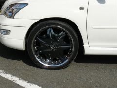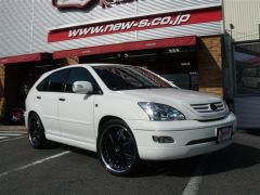 NEW’SエアロにNEW’Sホイール!!雑誌のNEW’S広告でお馴染みのハリアーです。全体的にクロームパーツをBLKクローム加工仕上げにこだわりました。アメリカで走ってそうな雰囲気でしょ!?