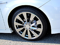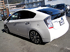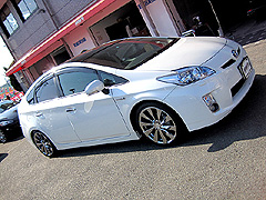 気品高いパールホワイトの車体に、ブラックメッキのレイズ「ジェノーマ」18インチが全体を引き締めていますね☆フェンダーとの隙間はエスペリアのサスでしっかり詰めておりますよ!