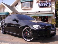 なんと世界限定数本と言う超レアホイルです、アメリカの「べラーノVSI-7」といいますモチロン日本には1台のみ!しかもこだわりの鍛造ホイルに特注マットブラック塗装で渋く決めていますねーキャリパーもレッドに塗装してアクセントにしています。ダウンサスはアイバッハ、エアロはMテク。ん〜渋い!オーナーのこだわりを感じますね(^^)