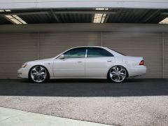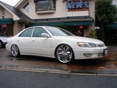 フルLEXUS仕様にボディはホワイト一色ペイント、ミトス/ミラーウインカー、フェンダーウインカースムージング足元にはLEXANI/ICE20インチ、足回りはなんと…ACC特注エアサス!しかも!ACCカタログ2008のウインダムベースカーに採用されちゃいました!! スゴイ…(゜д゜;)あとはヘッドライトまわりが少しさみしいとこですねぇ…(^^;)