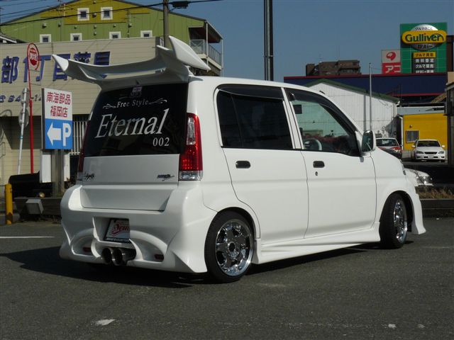 でましたっ!!アウトロースタイル!!ギャルソンの『ブラックマフィア』のエアロでフルチューン。リアバンパーは大加工して、センターダブル出しマフラーにリアマーカー埋め込み!オーナーさんお気に入りのポイントです☆