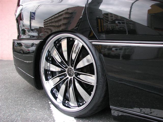 NEW'SフルKitでボディにボリューム感を出しつつ、足元は新たにAME・グレーサーの20インチへ変更しボディカラーとの絶妙なバランスに仕上がりました!もちろんエアサスで乗り心地も重視しています。フロントは後期仕様で新しさを出しつつ、リアはハイブリットテール移植、LSのマフラーテールで斬新さもバッチリです。